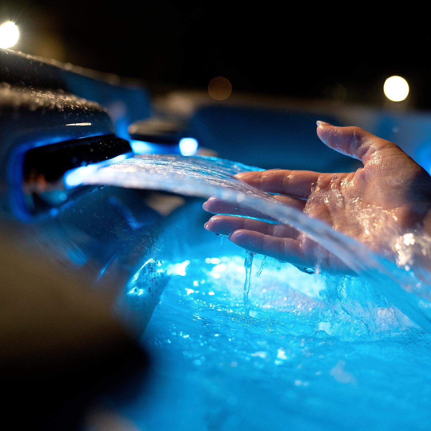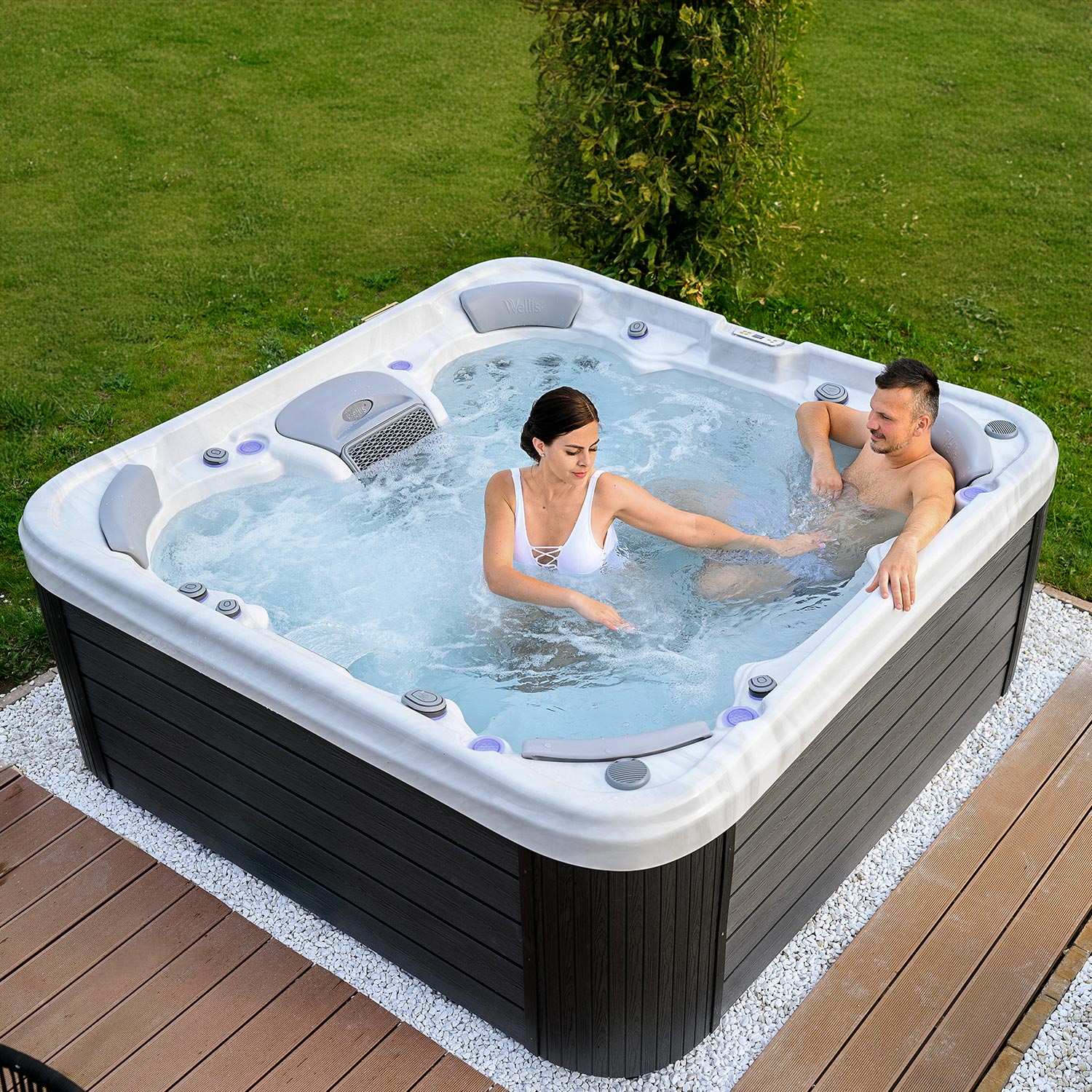 7 paikkaaOur Vienna spa was specially designed for entertaining and relaxing larger groups, as 7 people can participate in the wellness experience of the exclusive pool at the same time. The spacious interior allowed the installation of the WellDome™ foot massage system in the hot tub floor.